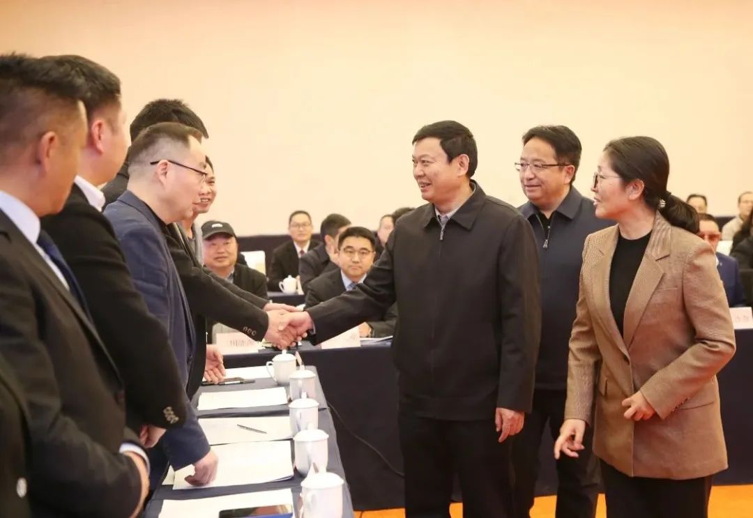 12月23日,全市民营企业座谈会召开。李富忠与民营企业家代表握手。