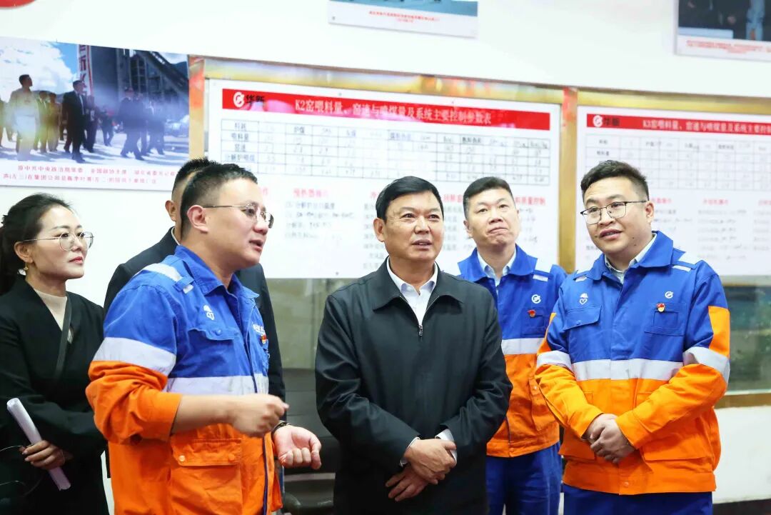 图为李富忠在华新水泥厂,详细了解企业生产经营、安全生产等工作。
