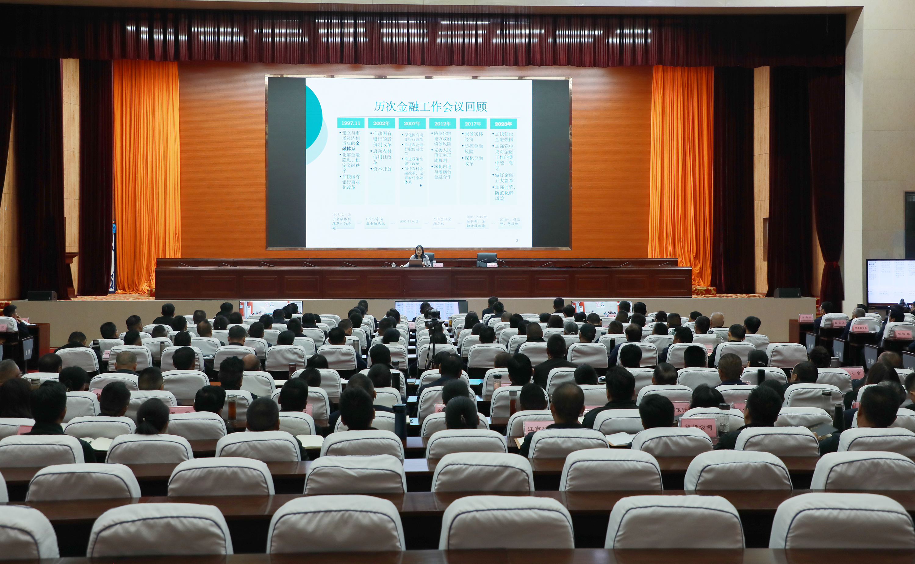 李颖教授从“中央关于金融工作的相关部署、我国金融领域存在的主要问题和风险、地方金融管理工作重点”三个方面,进行了深入阐释和系统解读。通过详实的数据和真实案例,深入浅出地剖析了打造高质量金融服务以及防范金融风险的重要性、具体方法与可行路径,让与会人员对金融工作有了更为清晰、深刻的认知与理解。