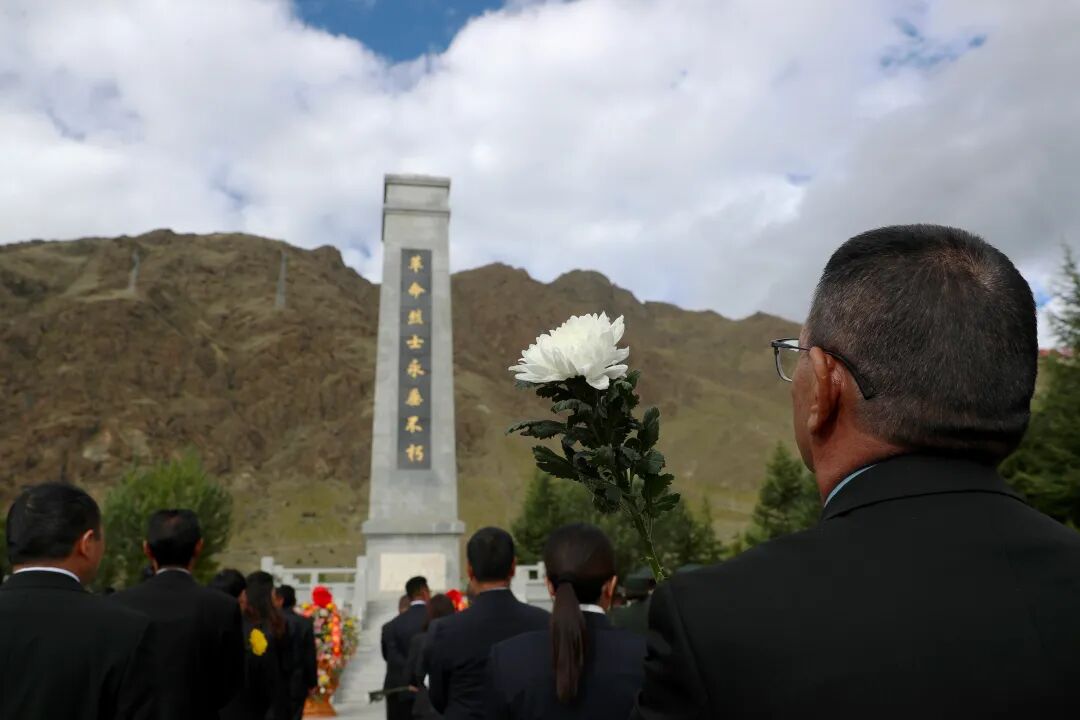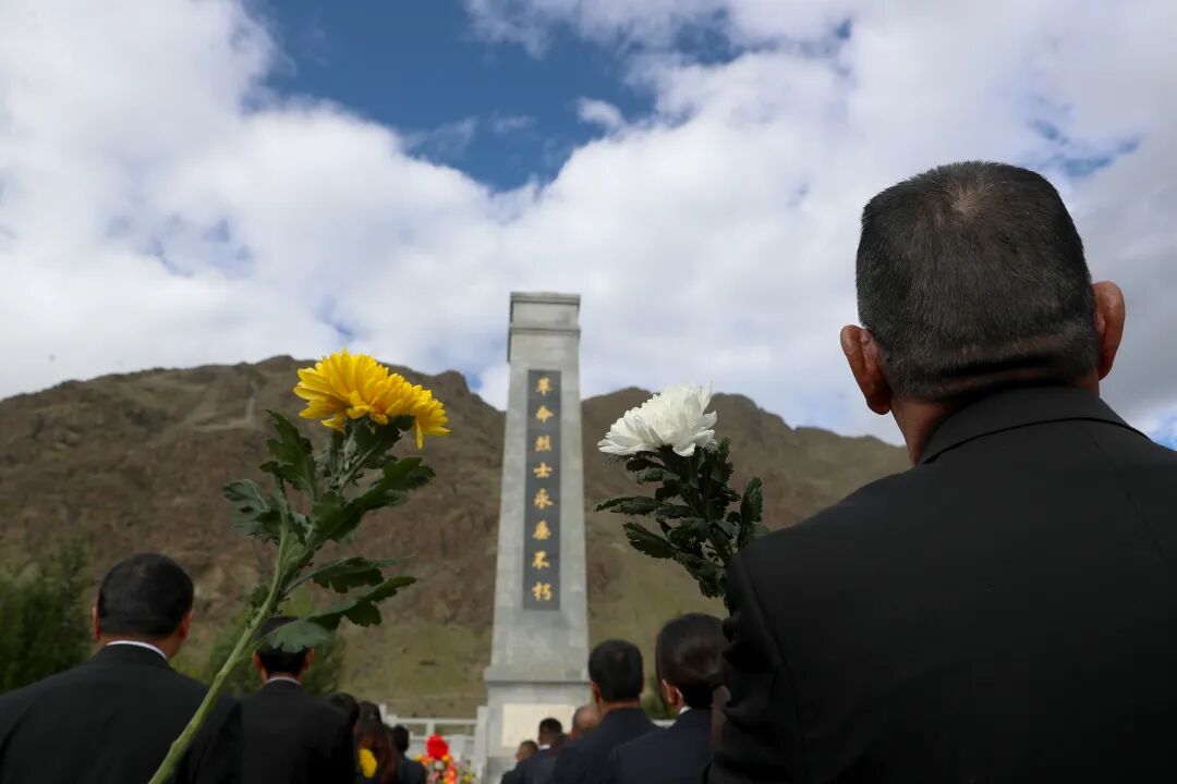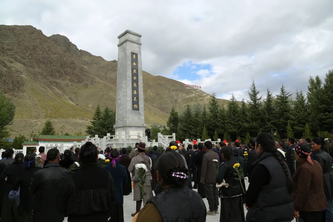 山南烈士陵园静穆庄严,烈士纪念碑巍峨矗立,“革命烈士永垂不朽”八个大字熠熠生辉。上午10时整,敬献花篮仪式开始。随着《义勇军进行曲》雄壮激昂的旋律奏响,全场齐声高唱中华人民共和国国歌。国歌唱毕,全场肃立,向为和平解放西藏、平息叛乱、民主改革和在中印边境自卫反击战、建设社会主义新西藏中英勇献身的烈士默哀。