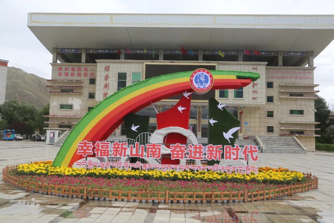 市城市管理和综合执法局园林绿化服务中心负责人肖强介绍:“今年雅砻文化旅游节氛围营造跟往年比更大气、更浓厚,主要是通过悬挂彩旗、粘贴宣传标语、打造景观造型、摆放鲜花等形式展现,展现出奋进新时代、幸福新山南的崭新面貌。”