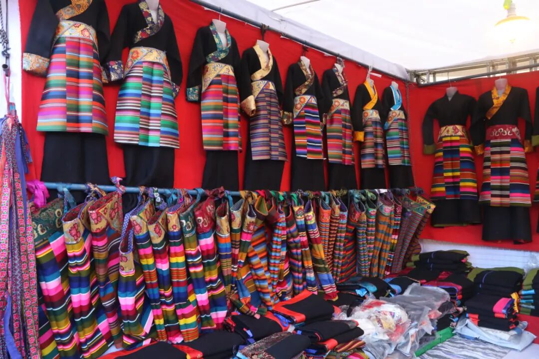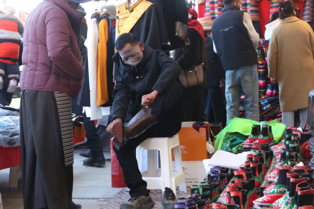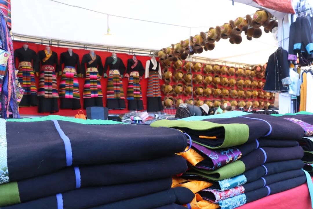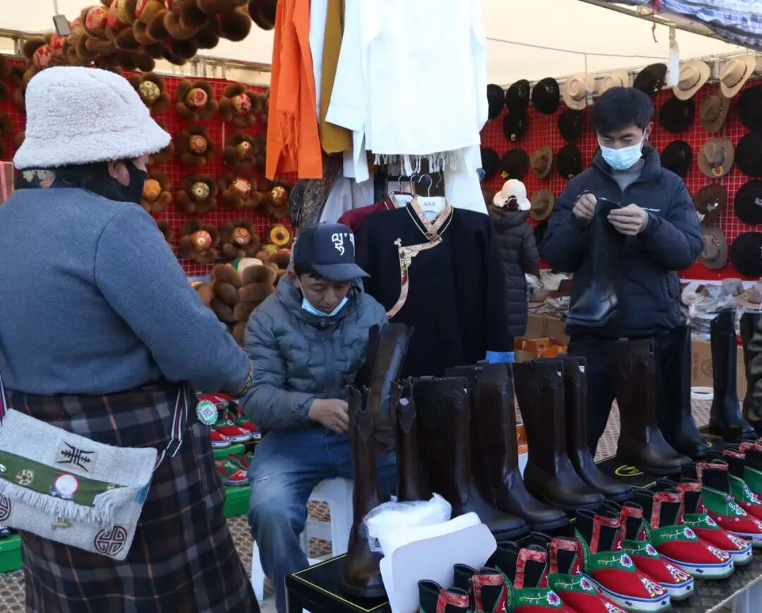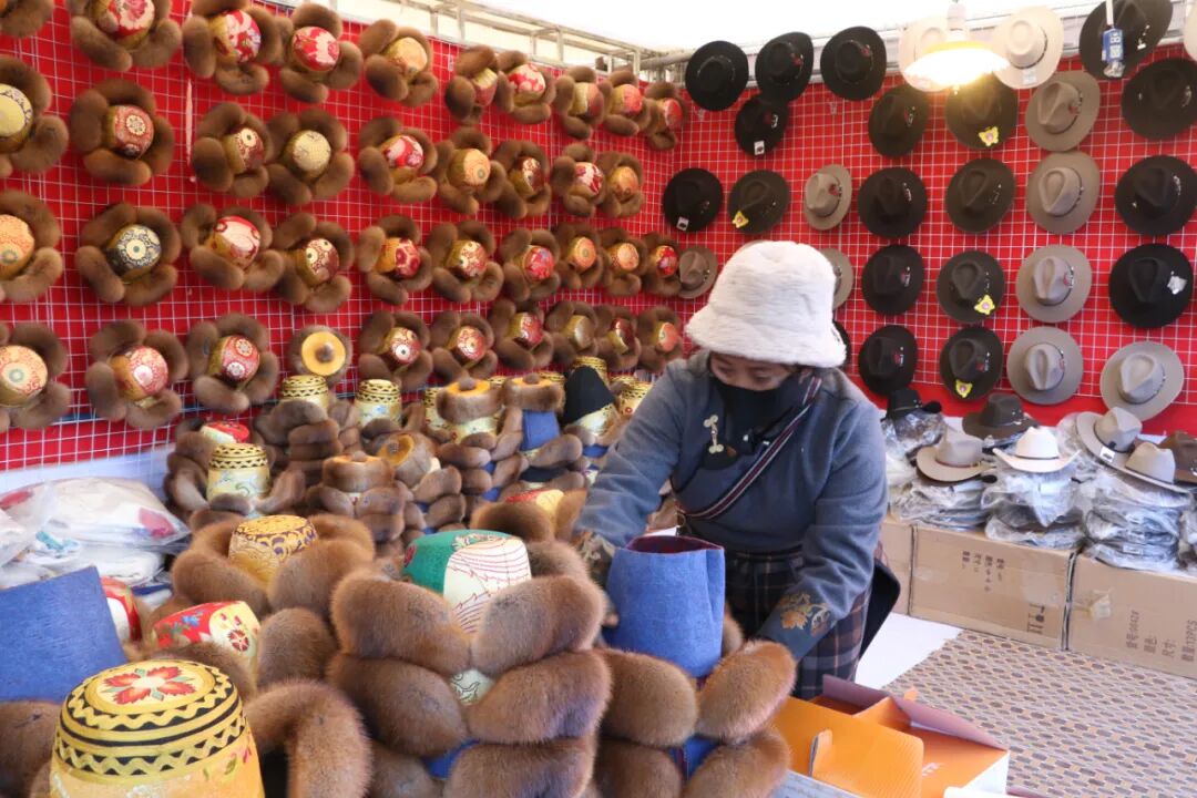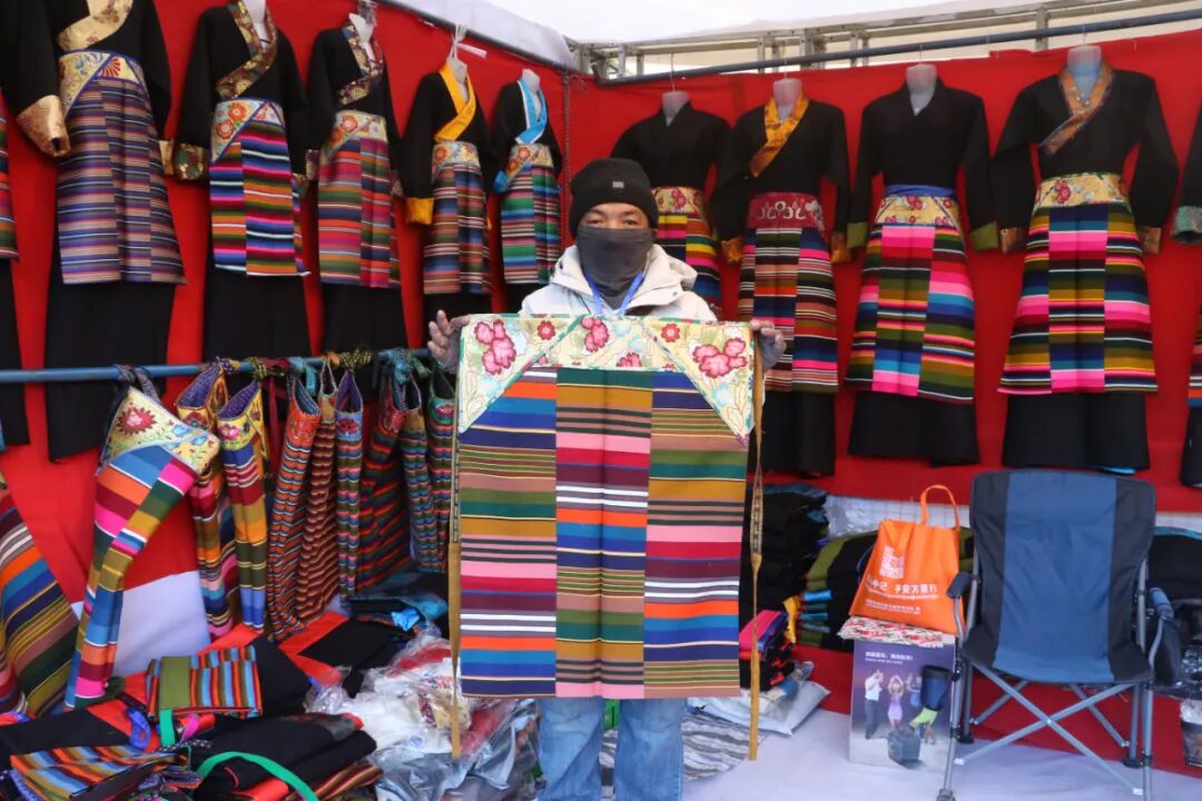 展位前,不时传来顾客的笑声和讨价还价声。一件件色彩鲜艳的藏装、一顶顶精致的帽子、一双双厚实的藏靴,不仅传递着藏族传统文化的魅力,也见证着尼玛普赤用一针一线织就的幸福生活。