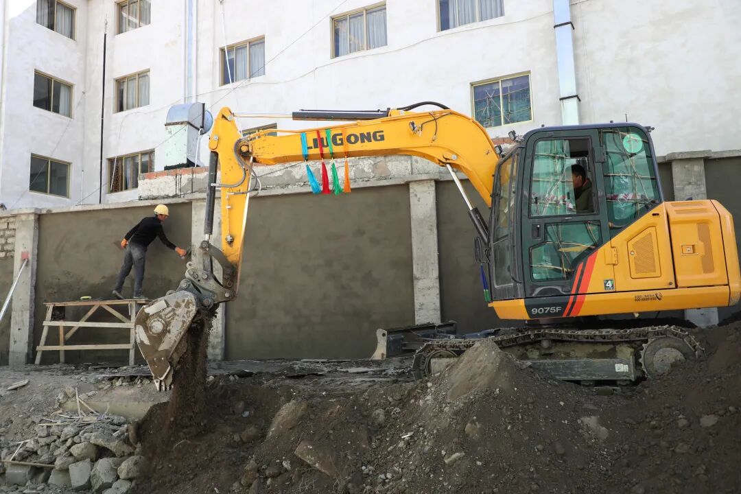 在乃东区农畜产品交流中心及附属配套设施改扩建项目现场,主体工程已初具规模,机械轰鸣、敲击声此起彼伏,呈现出一派紧张有序、大干快上的火热氛围。