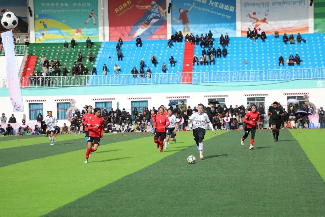赛场上,不见温婉娇柔,唯有飒爽英姿。姑娘们身着鲜艳队服,在绿茵场上全力冲刺、巧妙传接、果断射门。每一次变向过人都紧紧牵动着全场观众的目光,每一次奋不顾身地封堵都赢得阵阵热烈喝彩,每一粒进球的诞生都引爆看台上的欢呼,呐喊声、掌声与激昂的藏歌交织回荡,响彻赛场。