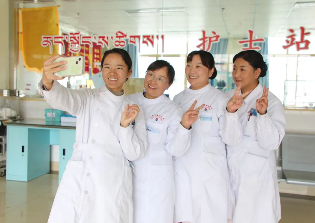 图为市藏医医院护士们在工作之余,拍下青春靓丽的合影。