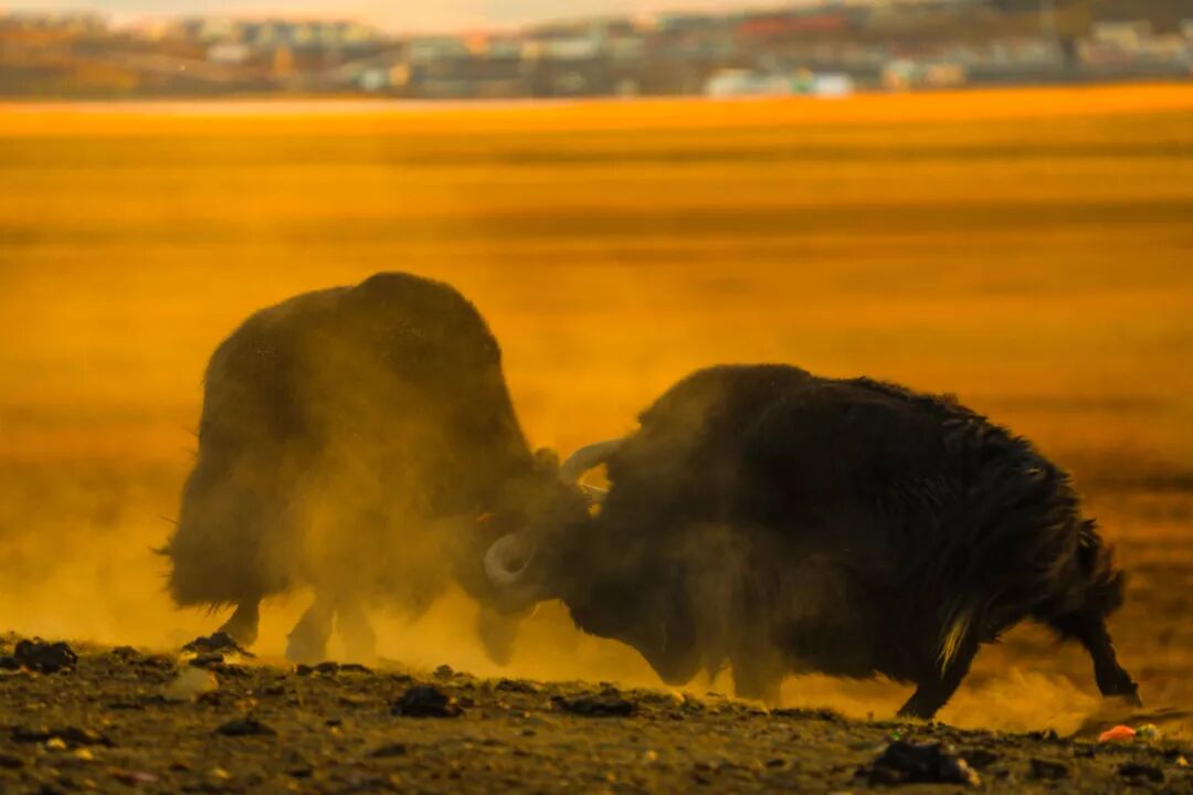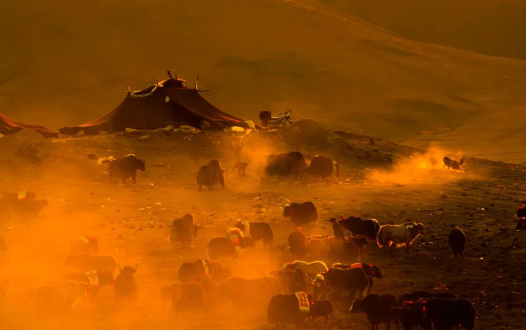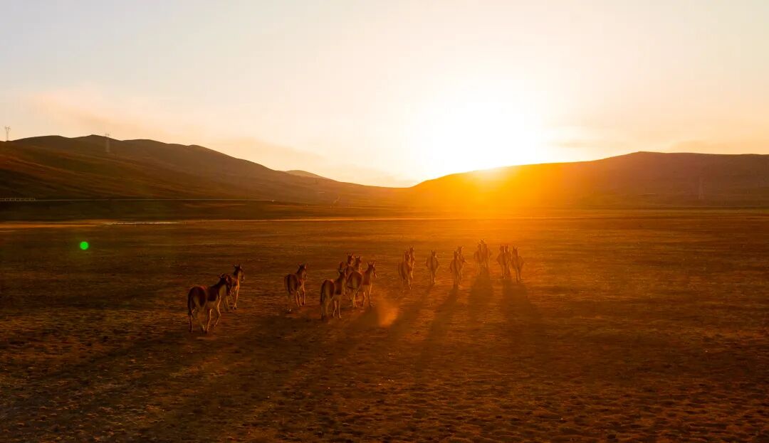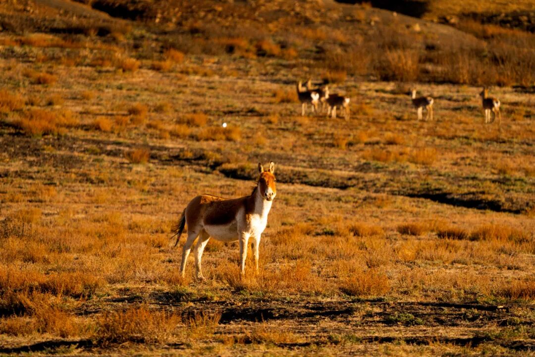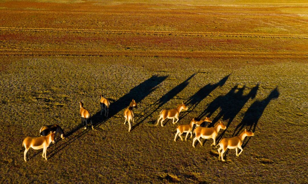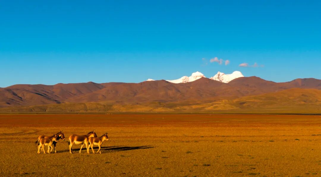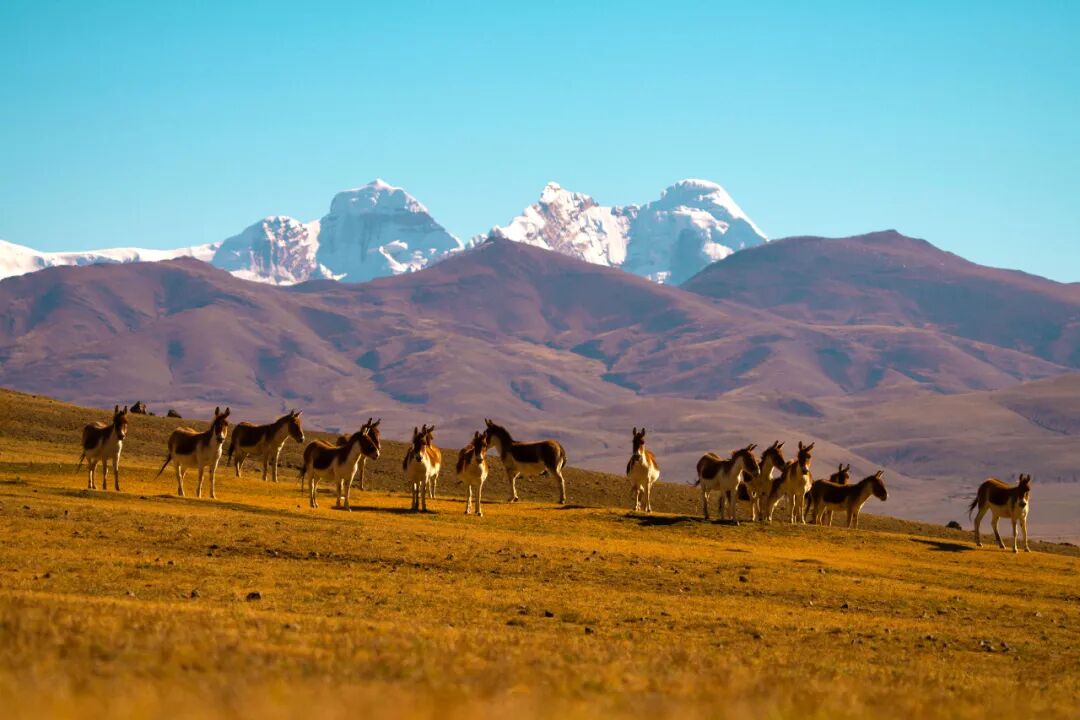 这静谧时光里,一群藏野驴踏着秋光而来。它们奔跑时鬃毛飞扬,像大地跃动的诗行;它们小憩时眼眸低垂,与雅拉香布雪山一同沉浸于天地间的温柔。