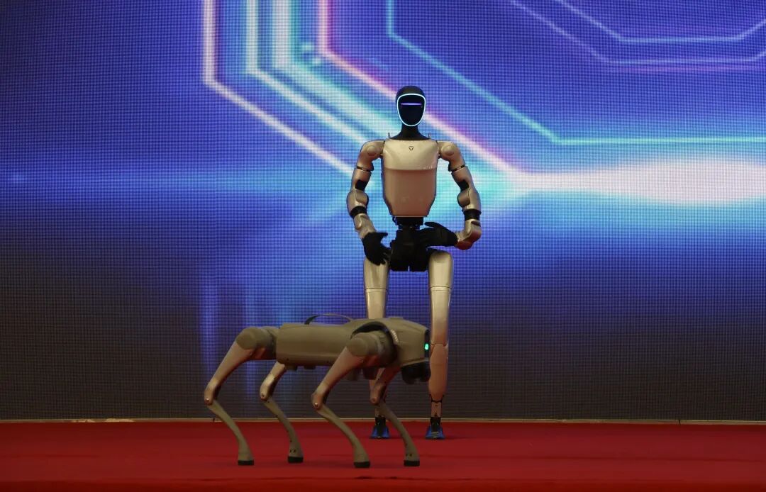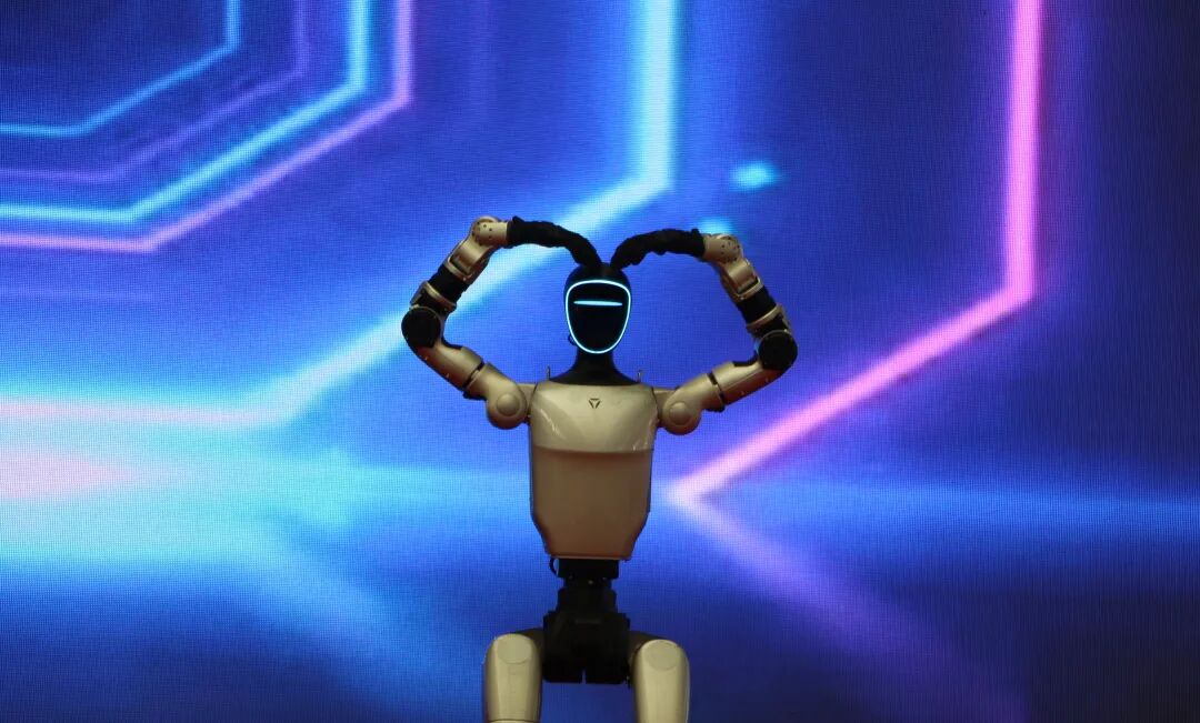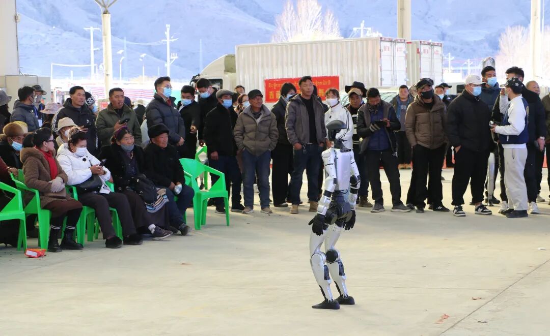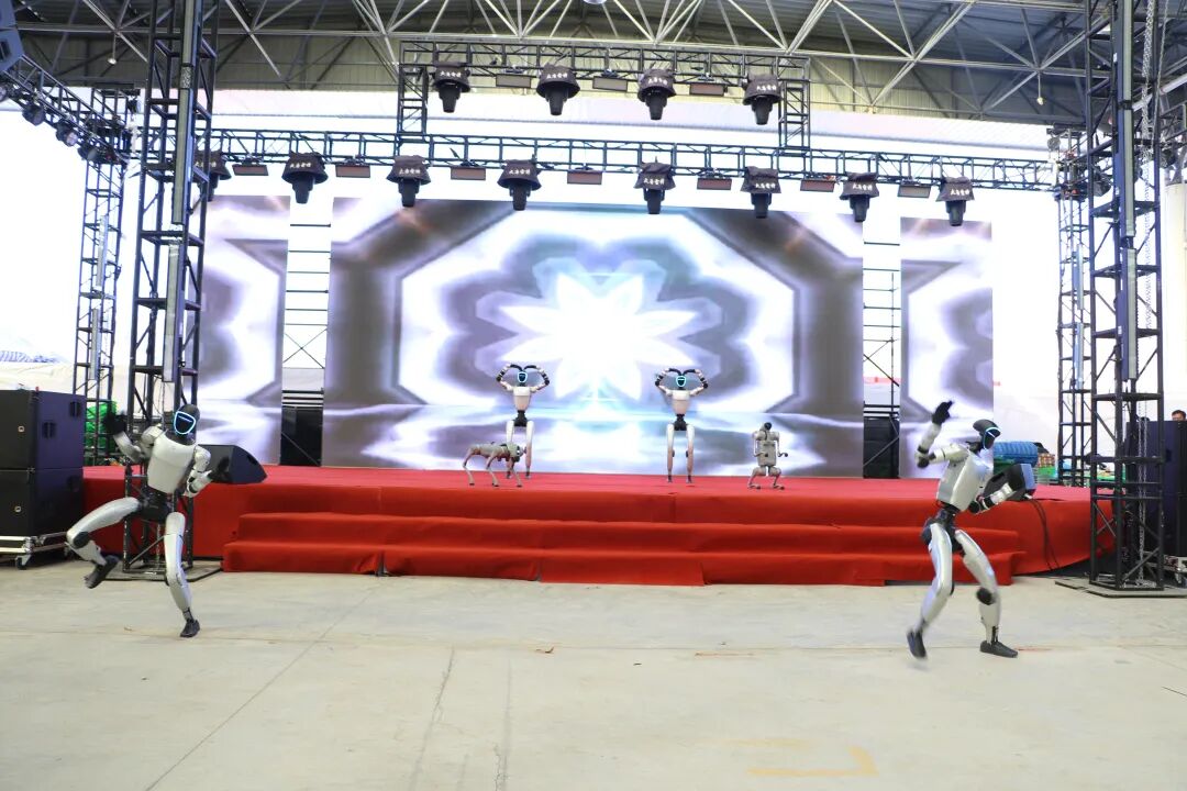 在物交会核心展区,多台智能机器人依次登场,拉开了精彩表演的序幕。随着动感音乐响起,机器人时而灵活转动身躯、跳起活力舞蹈,时而完成精准的空翻、旋转等高难度动作,流畅的姿态引得现场观众阵阵欢呼。尤其是当机器人做出模仿藏族舞蹈的经典动作时,独特的“科技+传统”融合创意,更是让现场群众眼前一亮,大家纷纷举起手机记录下这新奇瞬间。