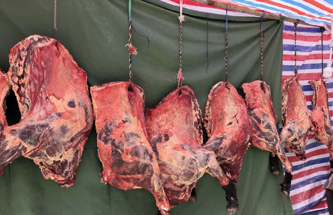 走进物交会农畜产品展区,阵阵肉香扑鼻而来,数十个牛羊肉摊位一字排开,新鲜宰杀的牦牛肉、羊肉色泽鲜亮,或悬挂展示,或切块分装。来自措美县哲古镇卡珠村的普布曲珍正忙着给顾客切肉称重,她带来的牦牛肉色泽鲜红、纹理清晰,刚切割好的牦牛腿肥瘦相间,吸引着市民和游客驻足挑选、询价。