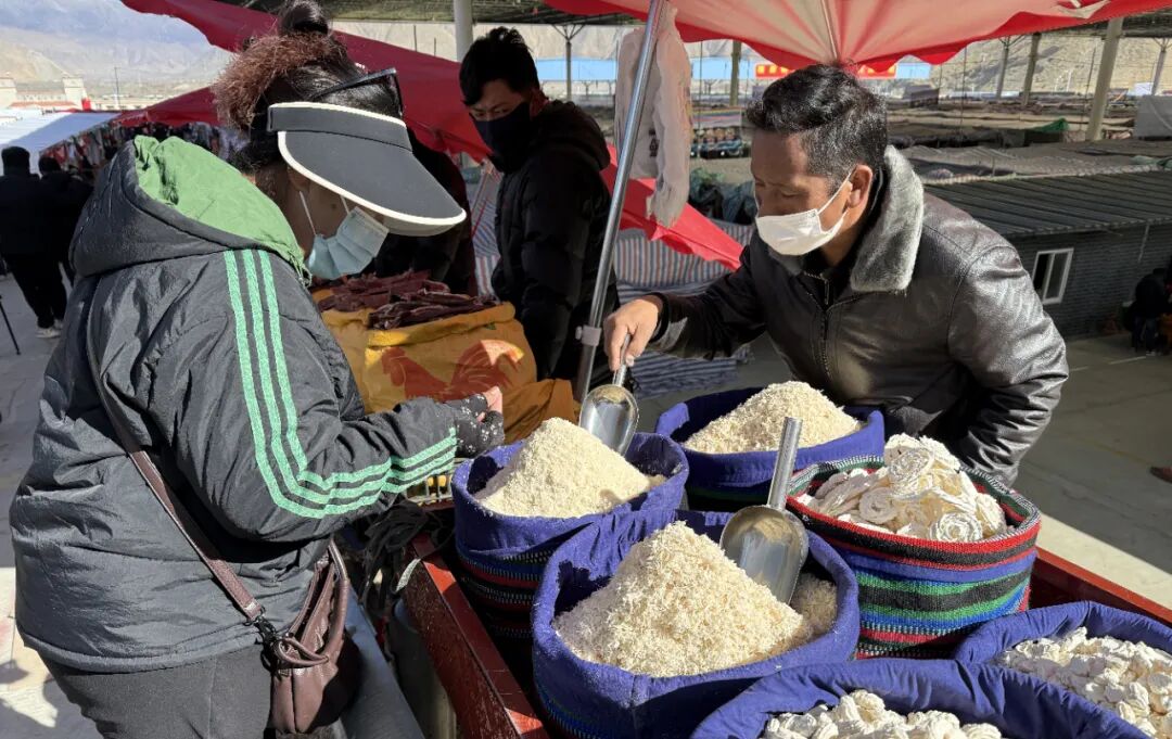 冬阳暖照雅砻河谷,人声鼎沸旺气升腾。12月1日,为期7天的山南市第45届雅砻物资交流会正式启幕。现场各个摊位前人流如织、购销两旺,用浓浓的烟火气书写着全市农牧民增收的喜人篇章。来自措美县、浪卡子县、曲松县等地的牛羊肉、酥油、奶渣等农畜产品扎堆亮相,凭借原生态品质和地道风味圈粉无数,成为物交会最受欢迎的“必买产品” 。