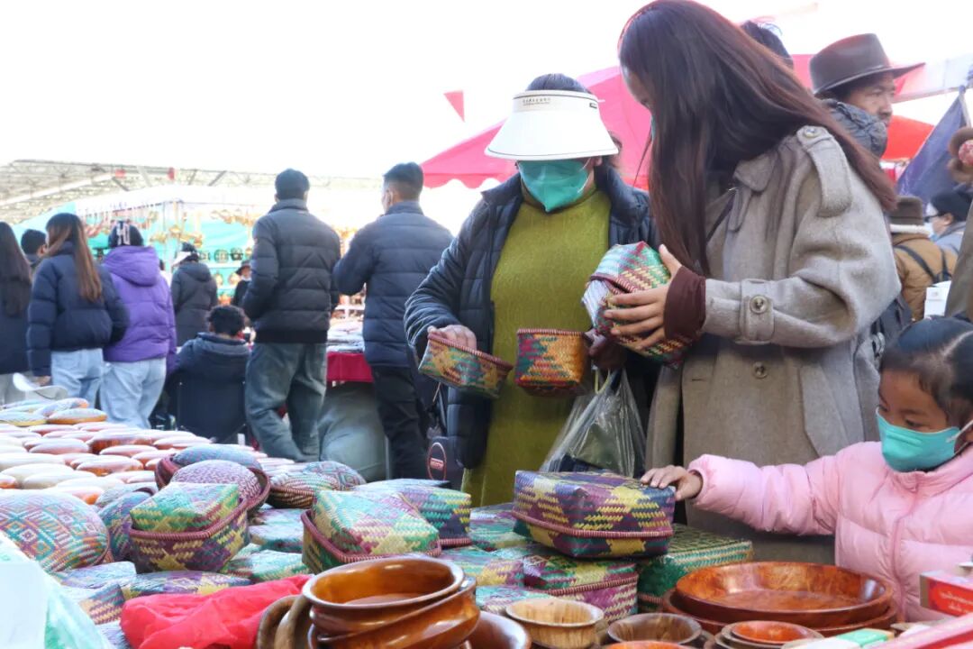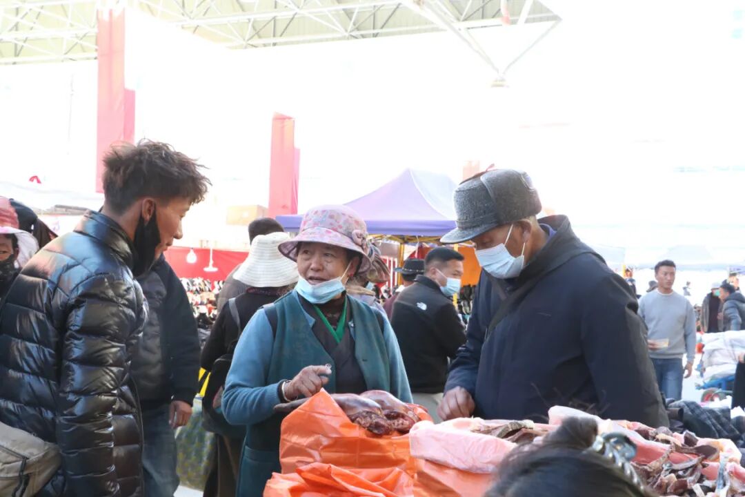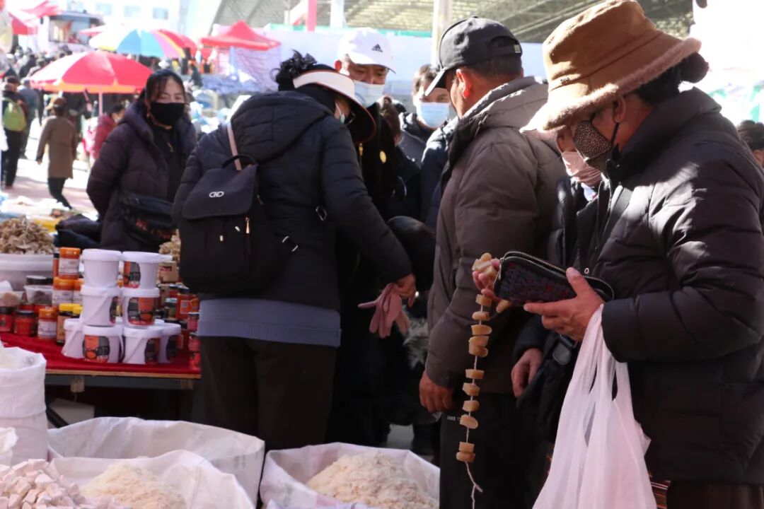 一踏入会场,浓郁的烟火气与多元文化气息扑面而来。吆喝声、讨价还价声、笑声交织在一起,像一首欢快的市场交响曲,让人忍不住加快脚步去探寻每个摊位的惊喜。摊位间人头攒动,货架上琳琅满目的商品令人目不暇接,空气中弥漫着肉香、茶香、奶香与织物的棉麻气息,构成一幅热闹生动的高原市井画卷。