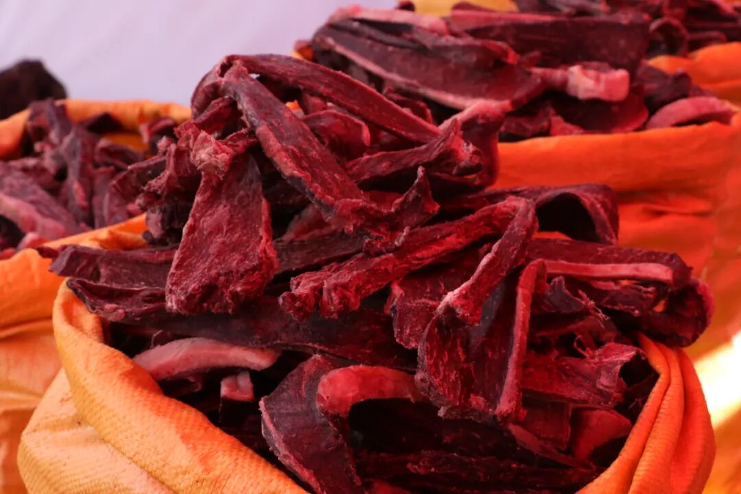 在本地特色展区,各县(区、市)的“当家好物”悉数亮相,成为市民游客争相选购的焦点。浪卡子县的牦牛肉色泽深红、肉质紧实,摊主普布一边麻利地为顾客分割、称重、打包,一边自豪地介绍:“我们的牦牛喝羊湖湖水、吃嘎玛林草原的天然牧草,不用复杂调料就鲜香十足。这才两天,我就卖了8万多元,不少内地顾客买了寄回老家,政府还补贴邮寄费,物交会真是越办越好。”摊位前,几位来自拉萨的顾客正认真挑选,不时用手机拍下照片发给家人确认。