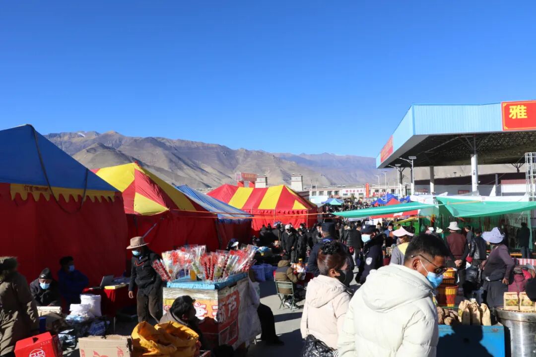 洛扎粉丝、隆子黑糌粑、桑日葡萄……每一个摊位前都人头攒动。