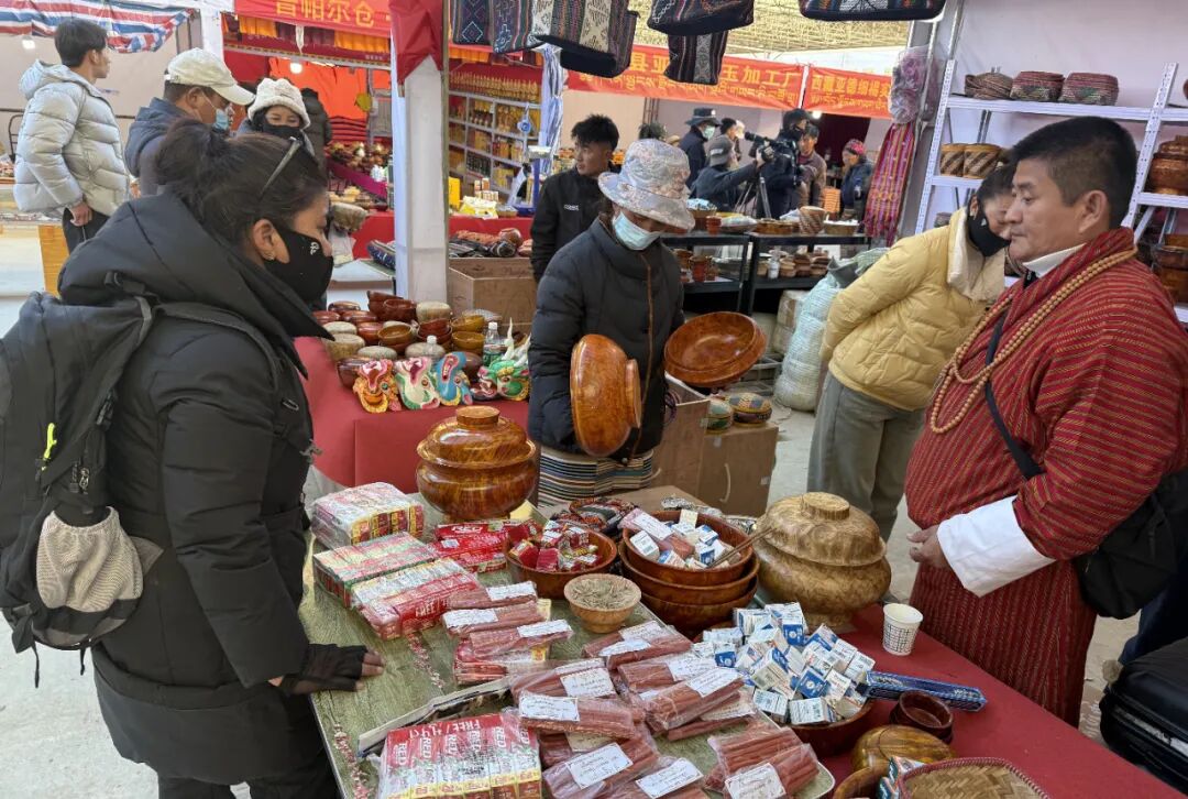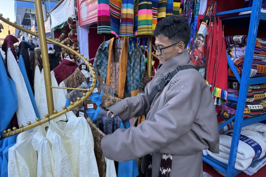 这场物交会上,巴基斯坦的手工挂毯、铜器,不丹的精美服饰、手提包,尼泊尔的银饰手串、手工挂件跨越国境而来;上海的文创潮品、四川的麻辣风味、江西的陶瓷好物千里赴约;加之山南本地自带底蕴的氆氇、藏香、木碗等非遗珍品,这场集“全球好物、全国风味、本地非遗”于一体的盛宴,让市民游客一站式解锁多元生活美学。