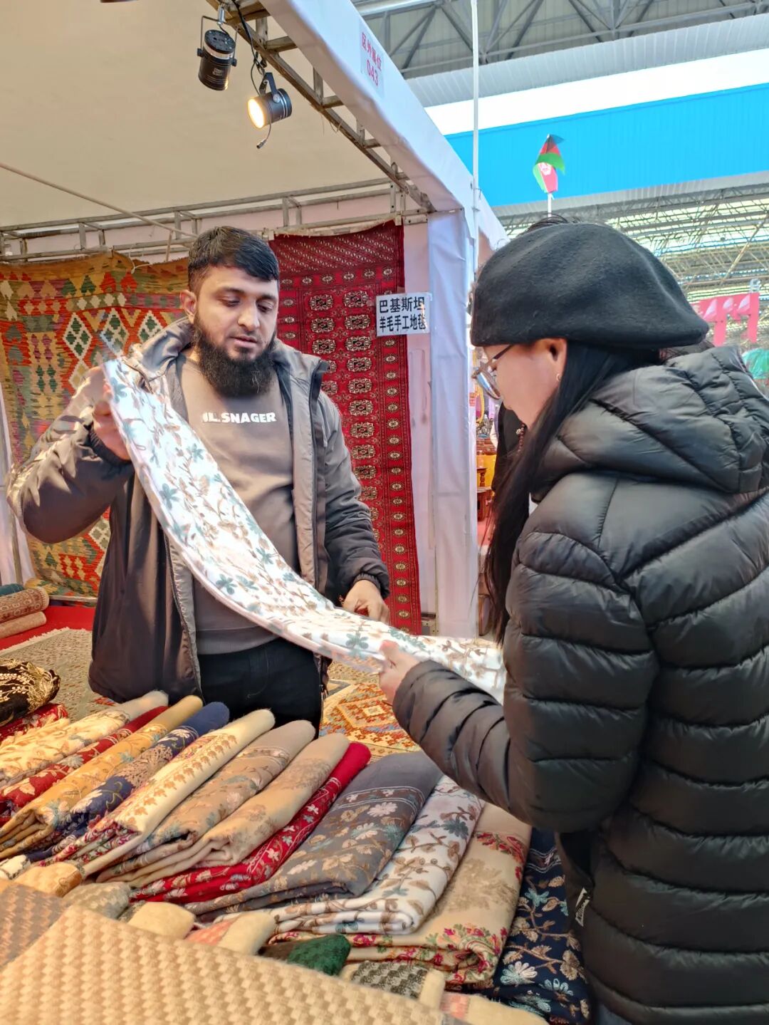 来自湖南的张倩璐女士在阿富汗展位上精心挑选着手工编织地毯,她开心地说:“这是我第一次来山南的物交会,现场有很多展位和展品,我今天主要买了一些阿富汗、巴基斯坦这边的手工羊毛制品。主办方也非常贴心,为我们提供了包邮服务,现场就可以寄给我的内地朋友,我觉得非常好。”