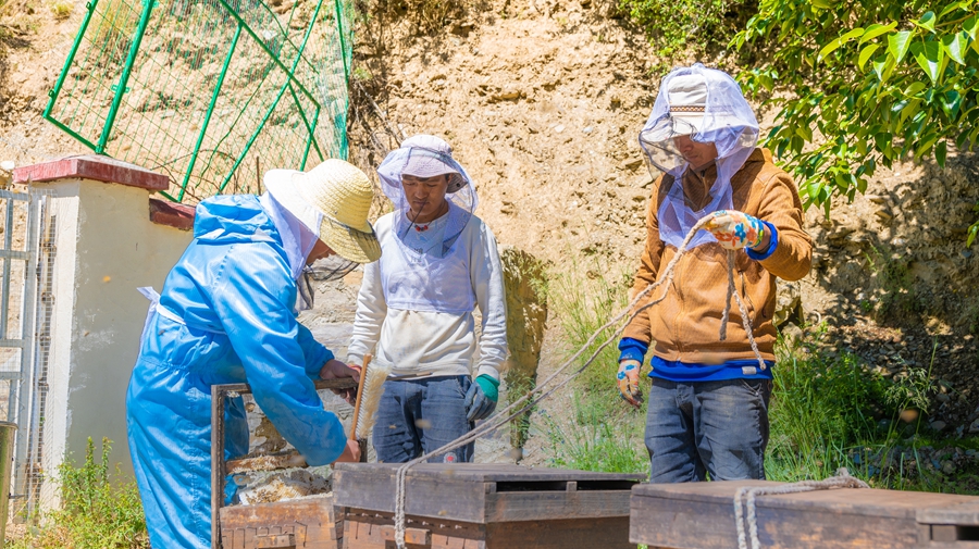 为破解技术和销路难题,卡热乡与西藏夜伴蜂声文化旅游发展有限公司签订蜜蜂养殖示范项目服务合同。公司不仅派技术人员全程参与产业基地建设,还安排技术员长期驻乡蹲点,手把手向群众传授蜜蜂养殖、越冬管理及繁育等关键技术。双方创新合作模式,签订五年蜂蜜回收意向合同,彻底打消群众“养得出、卖不掉”的顾虑。
