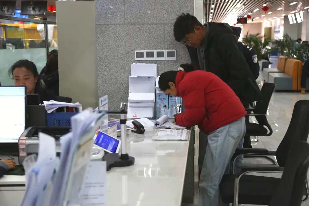 “请问办理什么业务?”工作人员面带微笑、主动引导,从材料预审、政策解答到业务办理,全程耐心细致、规范高效。