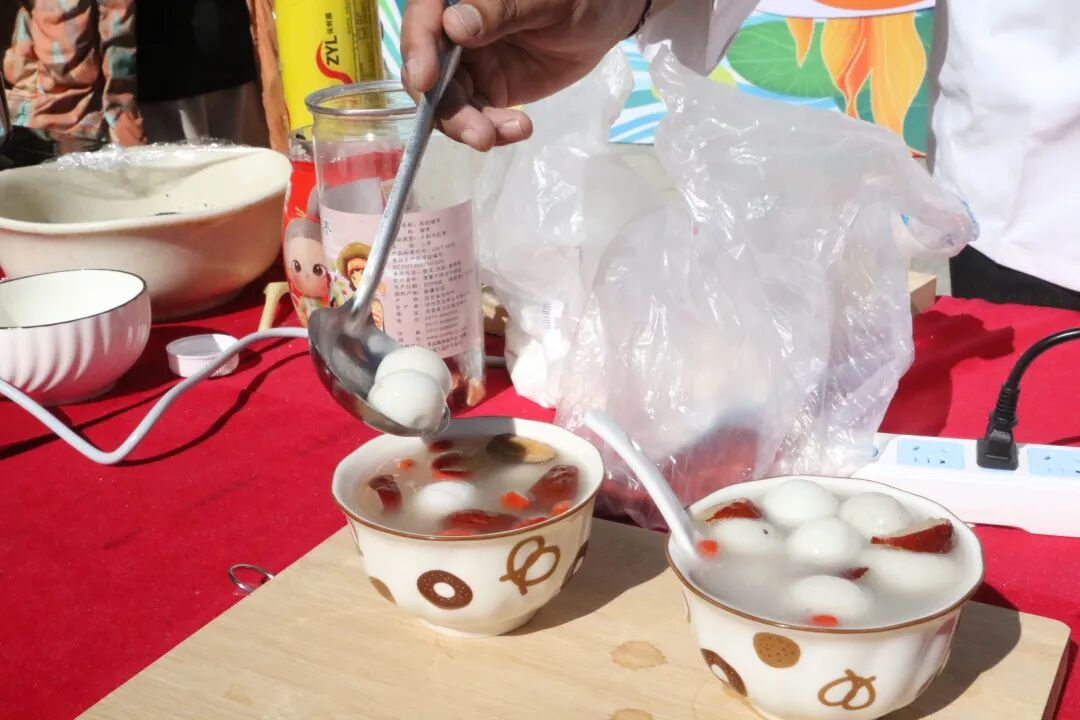 热气腾腾的汤圆新鲜出锅,甜香弥漫整个街区。领到汤圆的市民和游客有序品尝,软糯香甜的口感与团圆喜庆的氛围相融,暖意直达心底。