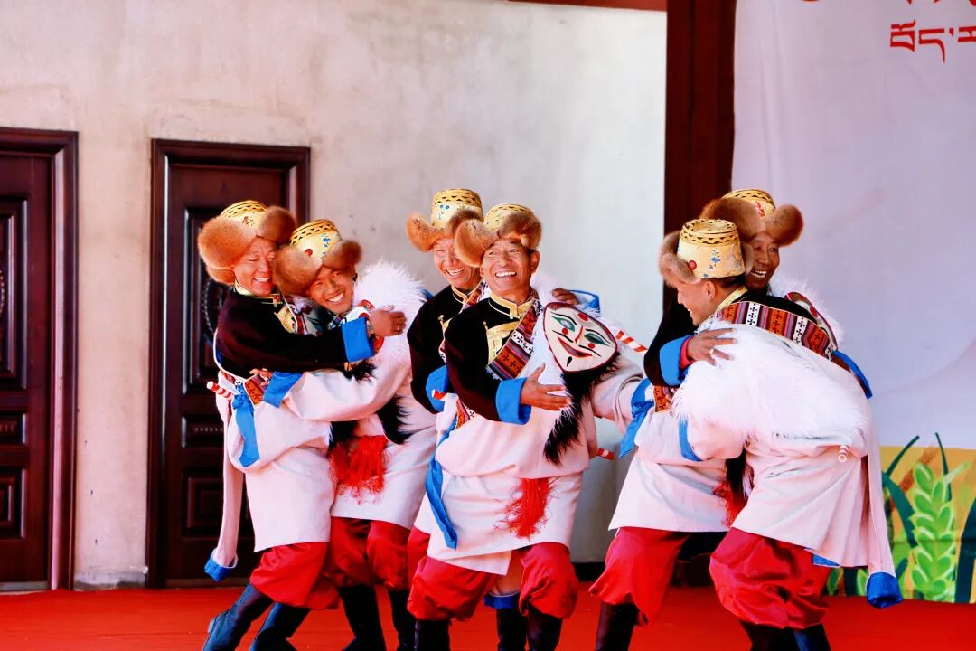 活动在欢快的开场舞《扎西德勒》中拉开帷幕。随后,《吉祥祝福》《文明薪火广耀万家》《金彩桑日》等一批讴歌幸福生活、绘就民族团结鲜活图景的精品节目轮番上演。在节目间隙,第九届全国道德模范、自治区农牧民骨干宣讲员尼玛次仁与2025年西藏自治区“十佳”基层宣讲员达娃旦增先后登台。他们结合西藏自治区成立60年来的辉煌发展成就,通过新旧西藏的鲜明对比,用通俗易懂的语言、鲜活生动的事例,向群众讲述在中国共产党领导下西藏发生的翻天覆地变化,深刻阐释党的创新理论的实践伟力。这种“文艺+宣讲”的形式,让广大农牧民群众在文化的浸润中,进一步深化了对中华文化的认同感和自豪感,有形有感有效地铸牢中华民族共同体意识。