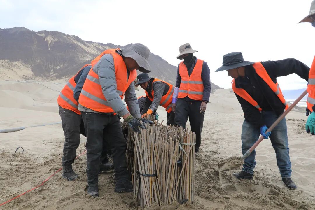 该项目总投资1.08亿元,造林面积379.5公顷,计划栽植沙柳、花棒、刺槐、沙枣等耐旱树种,并同步配套水利、电力等基础设施。截至目前,项目已完成网围栏搭设15183米,完成率100%;建成临时防火通道9.344公里,完成率100%;建成泵站及蓄水池各4座,完成率100%;平整沙地977亩,完成率100%,提水及输水管线完成率达90.5%,项目总体完成总工程量的75%。