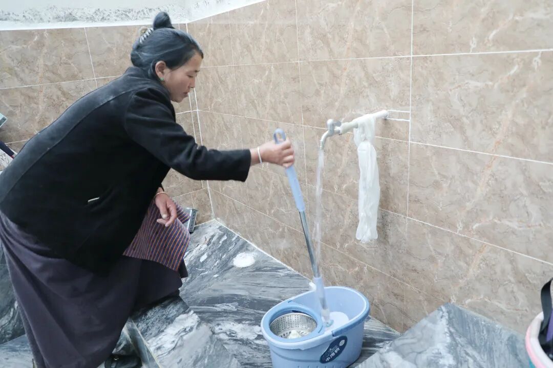 仅仅五天时间,随着最后一截水管稳稳接通,清亮的水流如欢快的精灵般喷涌而出,溅起的水花在阳光下闪烁着晶莹的光芒。村民白玛仓决激动地说:“以前家里的水很小,水成了我们最大的难题。驻村工作队了解情况后,马上帮我们张罗换水管的事儿。现在水量可大了,做饭、洗衣服再也不用愁,用水方便太多了,非常感谢他们。”