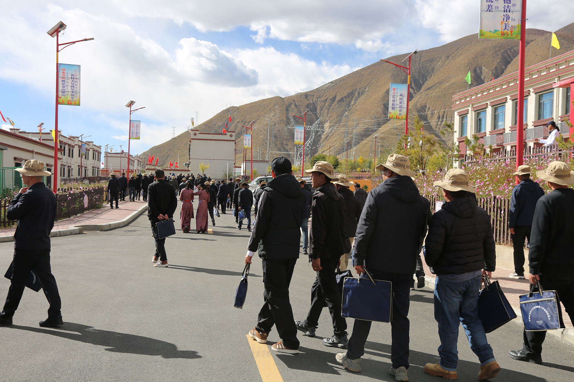 最后一站是扎嘎新村。这个易地扶贫搬迁安置点,如今已是人居环境整治的示范村。一栋栋整齐的藏式小楼,完善的配套设施,让观摩团成员赞叹不已。