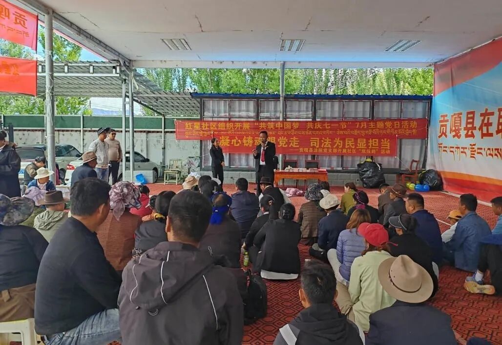 “请喝一杯酥油茶,我们都是一家人”—— 在红星社区的文化广场上,汉族、藏族、回族等各族居民经常开展“三个一”活动(即,同听一堂法治课、同唱一首爱国歌、同跳一支民族舞)。社区组建的“红石榴送法服务队”通过互动体验式普法、社区法律顾问坐班、发放法律服务卡等方式,让法治文明春风化雨。