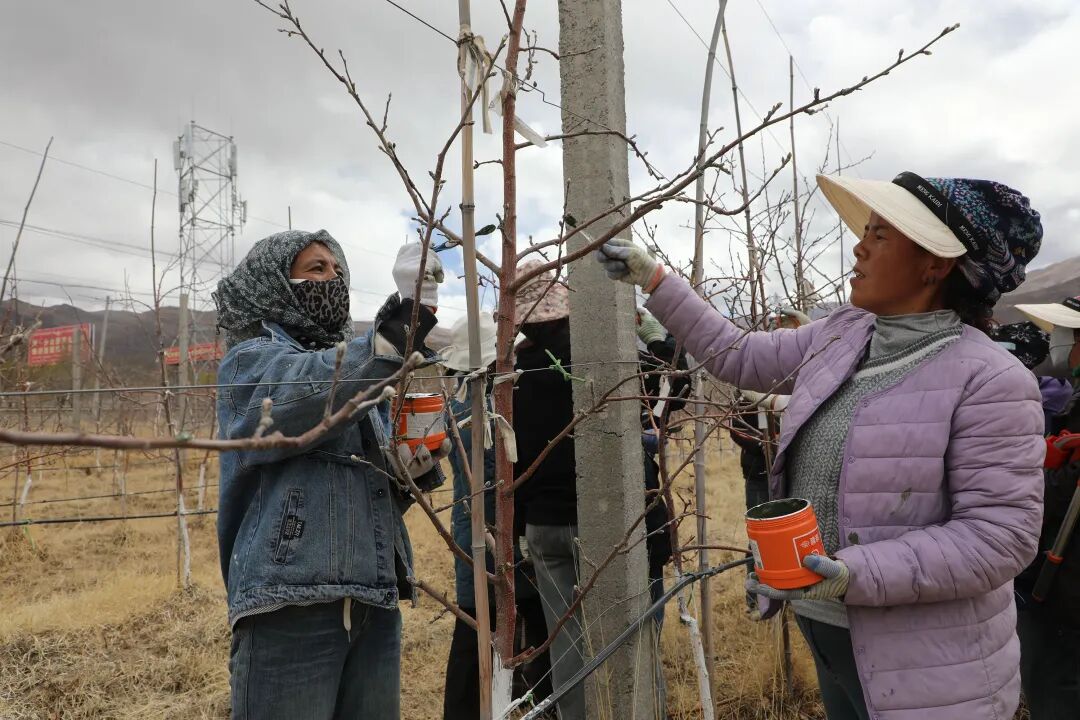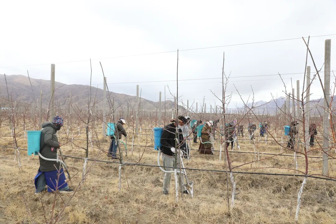 在扎囊县朗赛岭矮化苹果种植基地3号园区,春季果园管护工作有条不紊地进行着,果农们抢抓春季果树生长关键期,同步推进修剪、施肥、树枝伤口愈合等管护作业,以精细化劳作筑牢苹果丰产增收根基,为乡村全面振兴注入强劲产业动能。