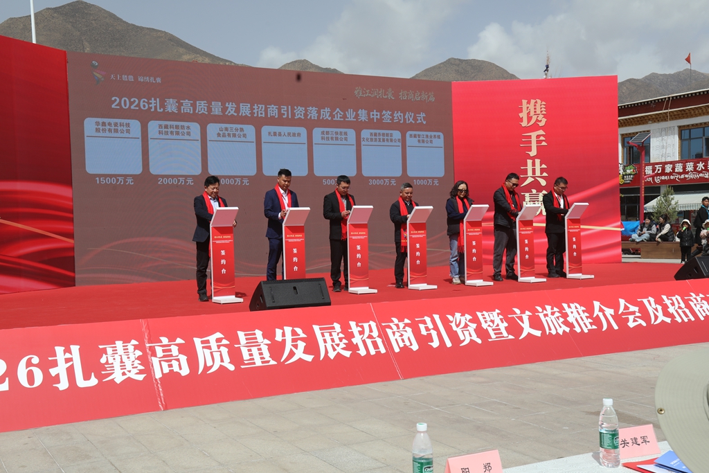4月11日,扎囊县成功举办“雅江润扎囊 招商启新篇”2026高质量发展招商引资暨文旅推介会及招商落成企业集中签约仪式。活动共签约企业12家、总金额3.8亿元。