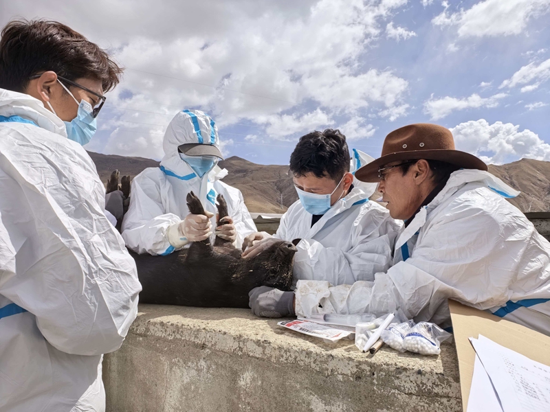 4月16日,琼结县农业农村和科技水利局组织县农牧综合服务中心技术人员、拉玉乡农牧综合服务中心工作人员及村级动物防疫员,联合开展动物防疫监测采样工作,切实筑牢动物疫病防控安全防线。山南市畜牧兽医总站包县技术员全程现场指导。