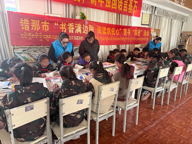 图书进学校,书香滋养少年成长。活动依托错那镇小学图书室搭建图书共享交换平台,开展好书推介、阅读分享、心得交流等特色活动,引导学生养成勤学善思的良好习惯。同时对优秀学生进行表彰鼓励,厚植青少年爱党爱国、热爱家乡的家国情怀,以阅读助力未成年人健康成长。