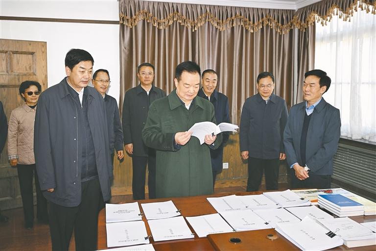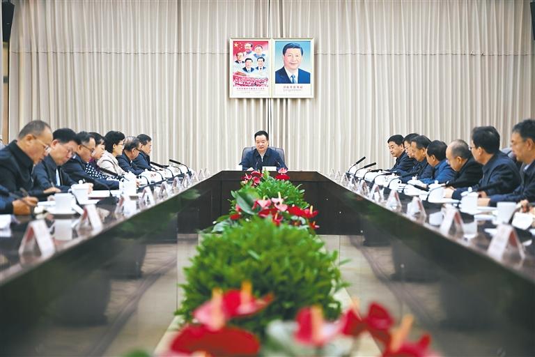 11月12日上午,自治区党委书记王君正来到自治区人大常委会调研。这是座谈会现场。 本报记者 旦增西旦 摄