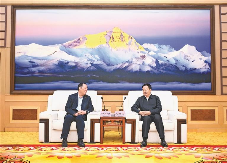 近日,自治区党委书记王君正在拉萨与天津大学党委书记杨贤金一行座谈。