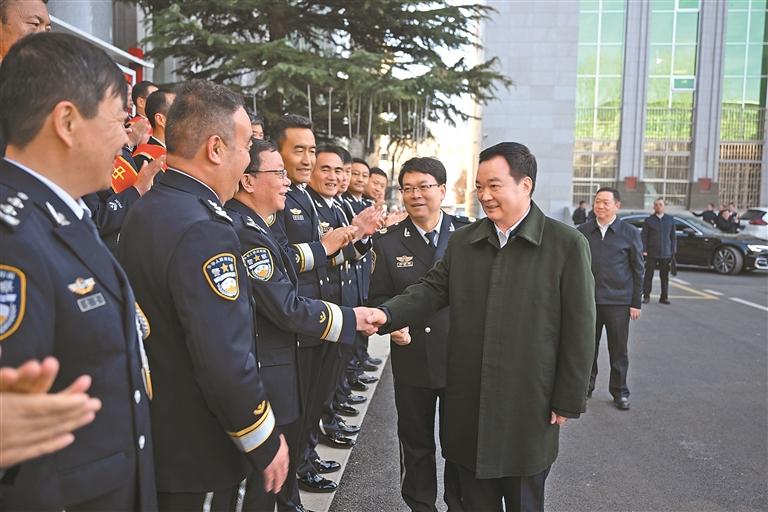近日,自治区党委书记王君正来到自治区公安厅看望公安民辅警,代表自治区党委、政府向大家致以第六个中国人民警察节的节日问候和崇高敬意。