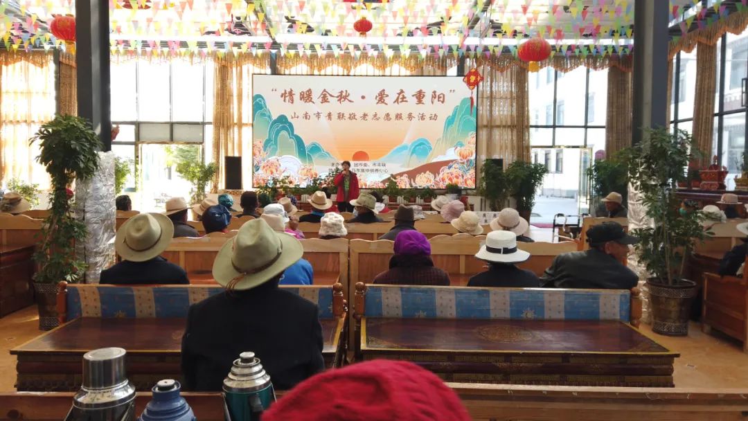 10月20日,在第75个重阳节来临之际,团市委、市青联组织市二届青联委员、西部计划志愿者,在乃东区特困人员集中供养中心开展以“情暖金秋·爱在重阳”为主题的敬老志愿服务,为老人送去节日的问候和祝福。