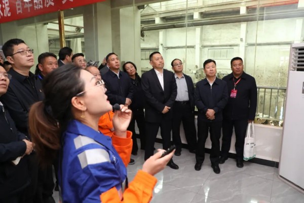 图为嘎玛泽登和与会代表在华新水泥(西藏)有限公司实地观摩水泥窑协同处置生活垃圾情况。