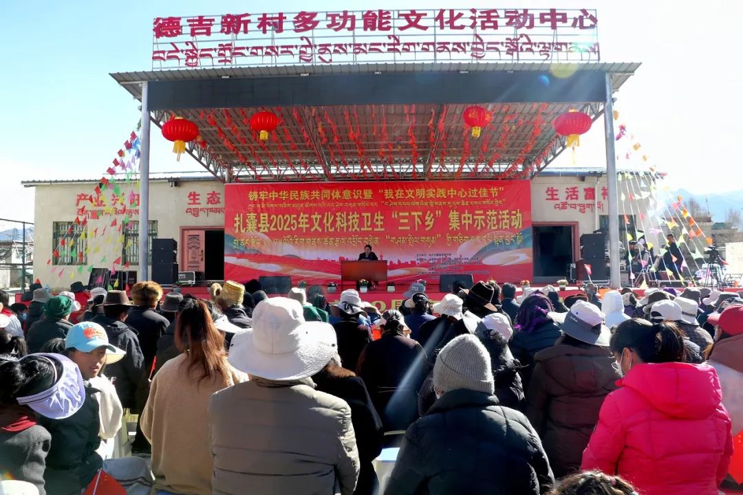2月18日,扎囊县铸牢中华民族共同体意识暨“我在文明实践中心过佳节”2025年文化科技卫生“三下乡”集中示范活动在扎其乡德吉新村举行。活动现场,基层农牧民宣讲员央宗围绕铸牢中华民族共同体意识作宣讲,让党的最新理论政策与基层群众“零距离”,引导农牧民群众自觉增强民族团结意识,共同营造民族团结一家亲的良好氛围。