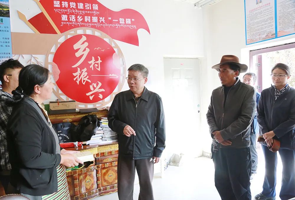 图为许成仓在琼结县拉玉乡强吉村调研主题教育开展情况。