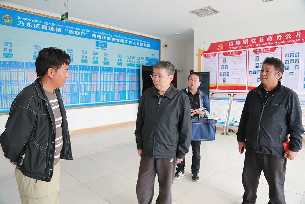 图为许成仓在乃东区昌珠镇调研主题教育开展情况。