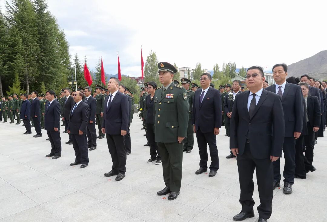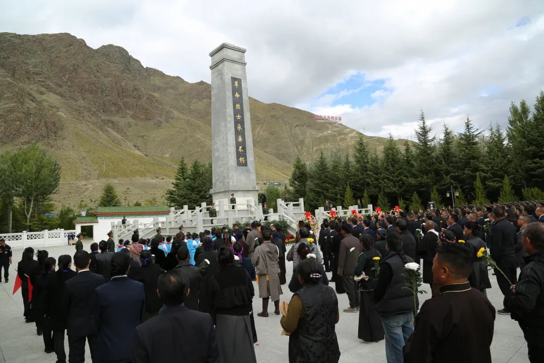 山南烈士陵园静穆庄严,烈士纪念碑巍峨矗立,“革命烈士永垂不朽”八个大字熠熠生辉。上午10时整,敬献花篮仪式开始。随着《义勇军进行曲》雄壮激昂的旋律奏响,全场齐声高唱中华人民共和国国歌。国歌唱毕,全场肃立,向为和平解放西藏、平息叛乱、民主改革和在中印边境自卫反击战、建设社会主义新西藏中英勇献身的烈士默哀。
