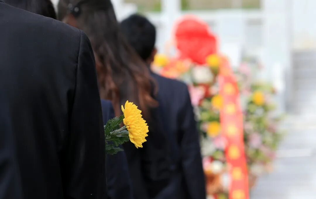 伴随着庄重舒缓的《献花曲》,礼兵抬起花篮,缓步走向烈士纪念碑,将花篮摆放在纪念碑基座上。全体人员肃穆静立,行注目礼。