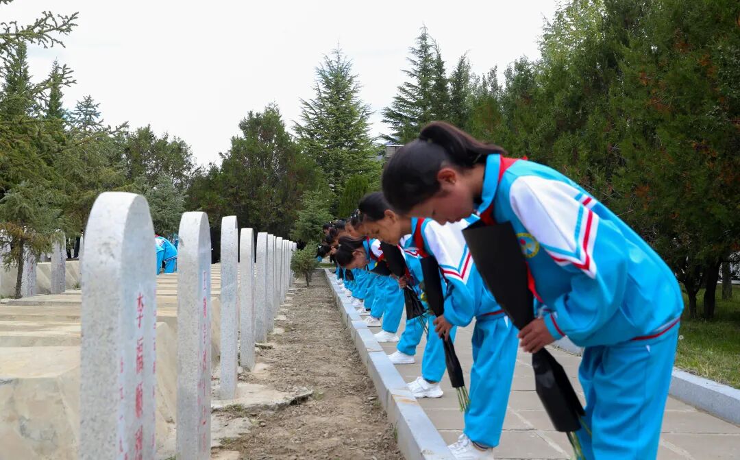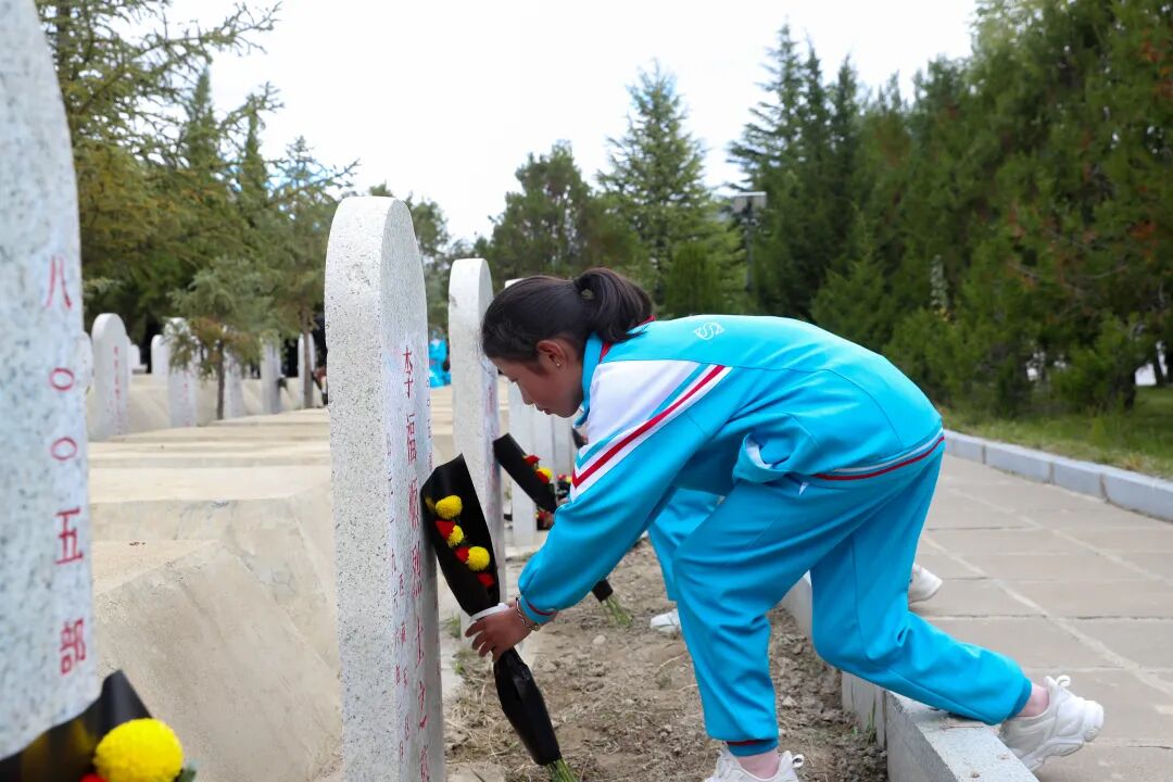 默哀毕,手持鲜花的少先队员面向烈士纪念碑高唱《我们是共产主义接班人》,表达继承先烈的光荣传统、沿着烈士足迹砥砺前行的志向情怀。