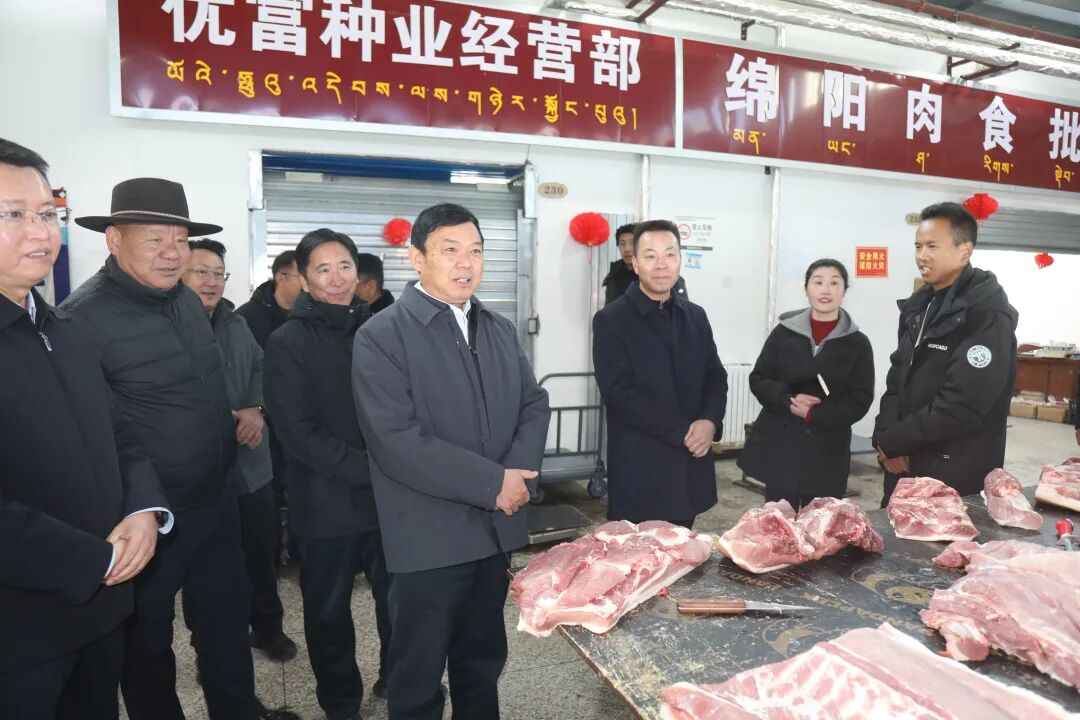 春节、藏历新年临近,雅砻大地洋溢着喜庆氛围。市农贸市场内熙熙攘攘、顾客络绎不绝。李富忠来到蔬菜、水果、肉类等多个摊位,与摊主亲切交流,详细询问产品产地、货源、价格、销售等情况,祝大家生意兴隆、新年快乐。他指出,春节、藏历新年是消费旺季,要始终把惠民生、保供应作为重要工作,聚焦“菜篮子”“米袋子”“果盘子”,全力以赴做好节日期间重要民生商品保供稳价工作。要强化货源组织调度,提供丰富优质的消费供给,密切关注市场价格,确保人民群众买得放心、吃得安心、用得舒心。